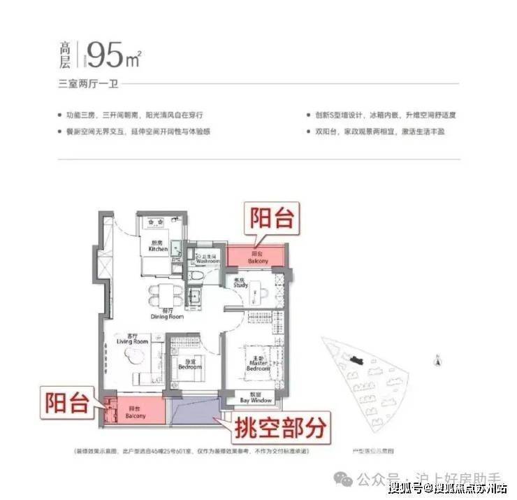再加上南向大面宽短进深、全卧飘窗、L型转角阳台设计,哪怕小户型89㎡3房,尺度感都超棒,采光和视野更是一流。